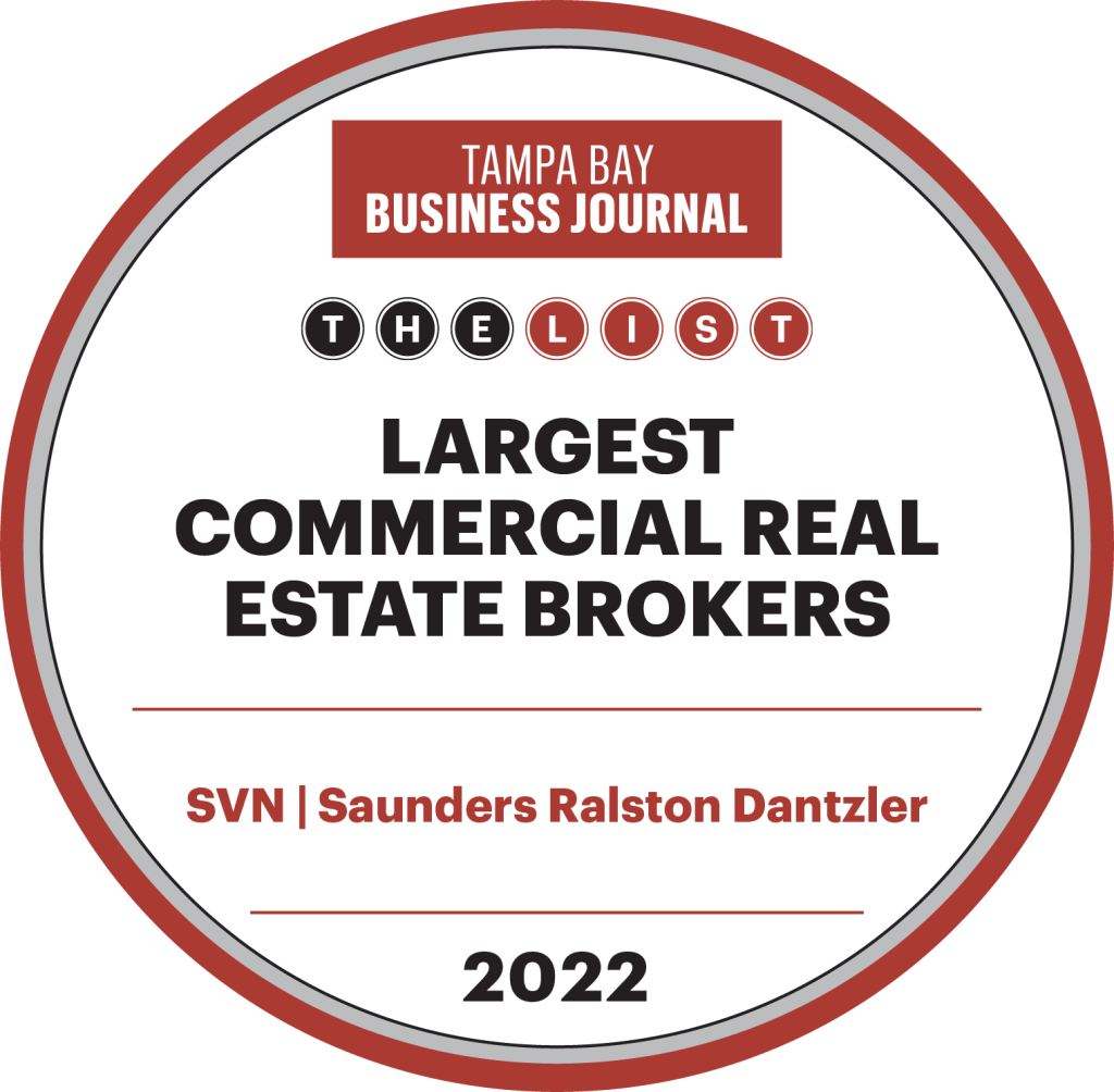 LAKELAND, FL, May 10, 2022 – The Tampa Bay Business Journal recently released its annual list of the Largest Commercial Real Estate Brokerages in Tampa Bay based on transaction volumes for sales and leases in 2021. SVN | Saunders Ralston Dantzler Real Estate was ranked 8th among 33 brokerages included in the list.
