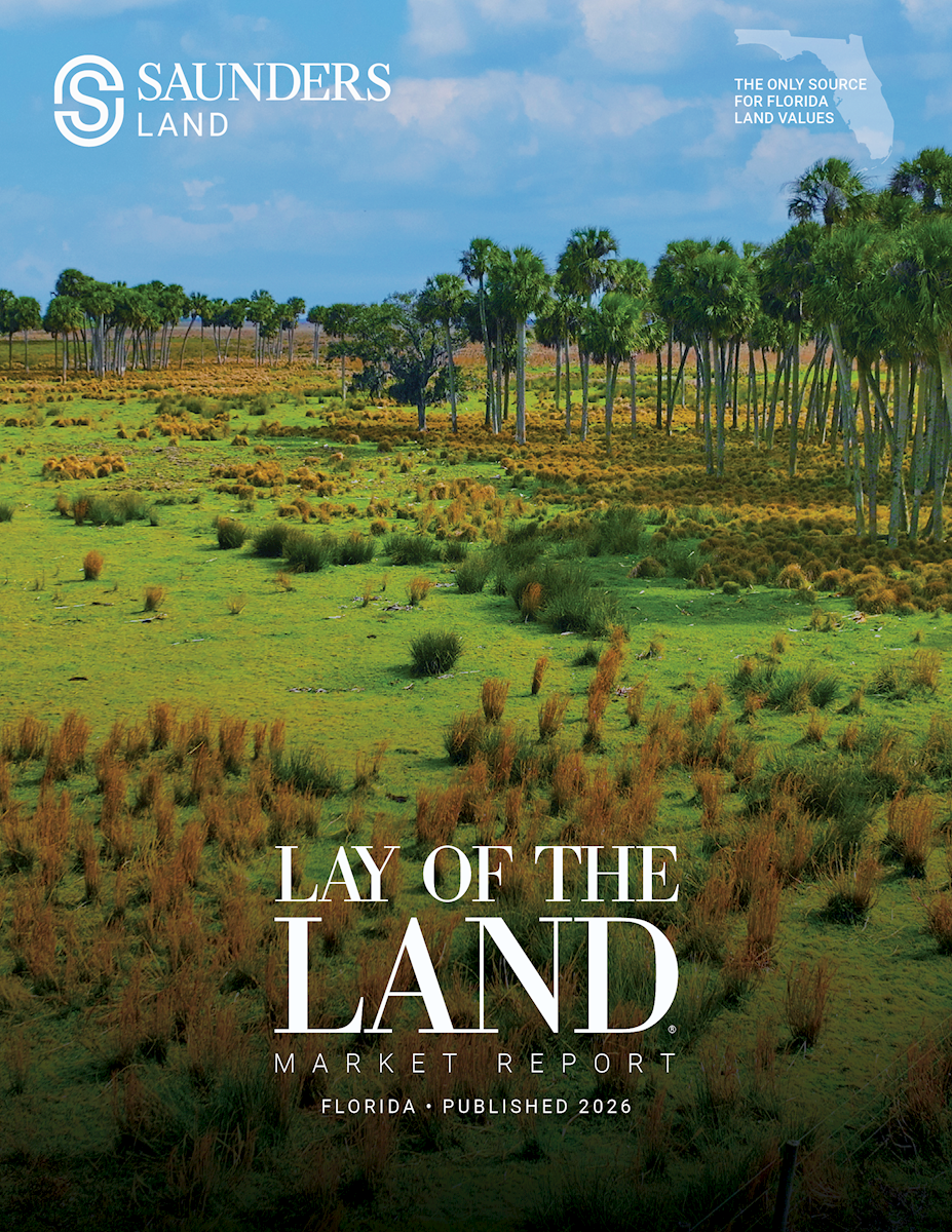 The Lay of the Land Market Report, now in its sixteenth year, compiles verified transaction data and market analysis across Florida’s agricultural, conservation, transitional, and development land sectors, offering one of the most comprehensive annual assessments of land values in the state.