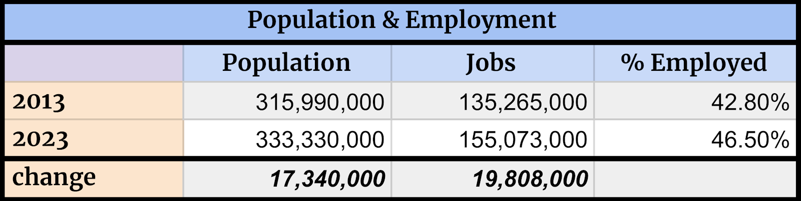It is also interesting to compare US GDP growth. 2013 GDP was 16,629 billion. Current GDP is 26,132 billion, representing an increase of over 50% in under a decade. One of the main influences on this was the rapid growth and implementation of advanced technology.